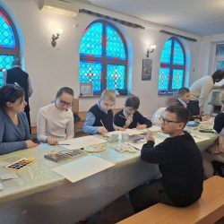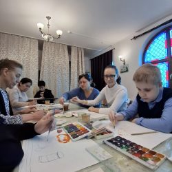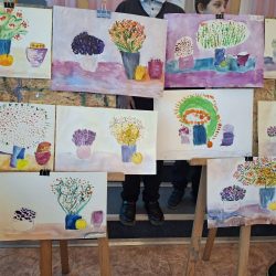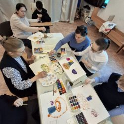 Атмосфера была спокойная и поддерживающая. Каждый ребёнок работал в своём темпе, а взрослые помогали там, где это было нужно — подсказывали, как держать кисть, предлагали попробовать разные техники, поощряли внимание к деталям и уверенность в себе.