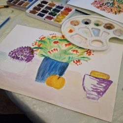 Ребята рисовали натюрморт, знакомились с основами композиции и учились передавать форму и цвет предметов. наш педагог Тихон Синицын шаг за шагом показывал, как расположить объекты на листе, как смешивать краски, подбирать оттенки и работать крупными мазками, не боясь экспериментировать.