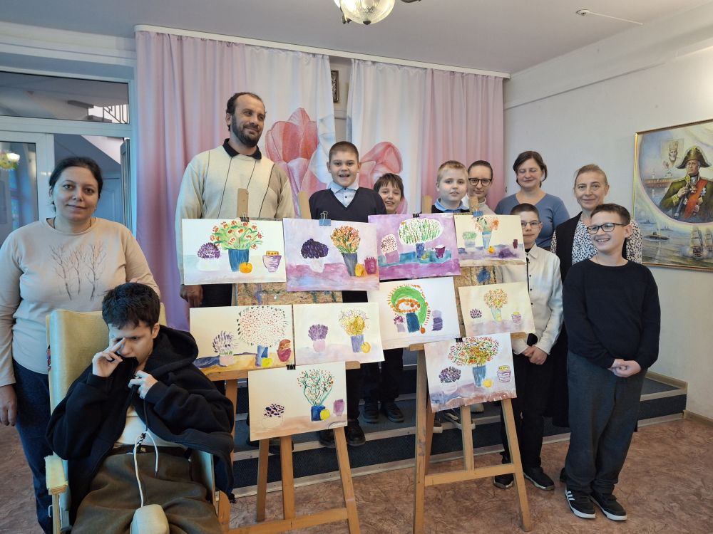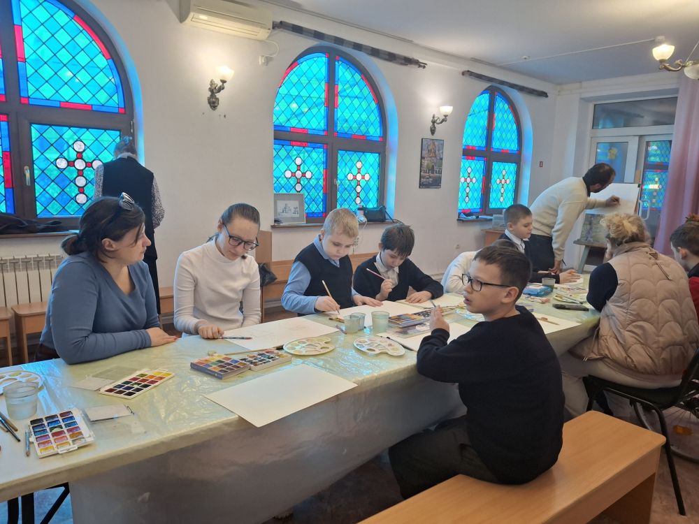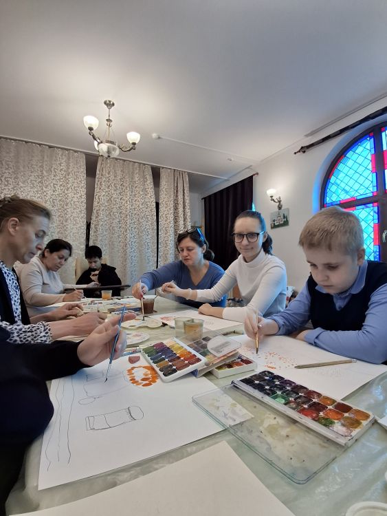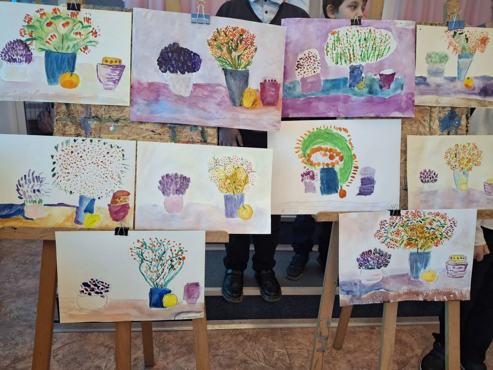 Атмосфера была спокойная и поддерживающая. Каждый ребёнок работал в своём темпе, а взрослые помогали там, где это было нужно — подсказывали, как держать кисть, предлагали попробовать разные техники, поощряли внимание к деталям и уверенность в себе.
