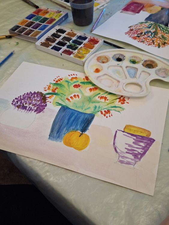 Ребята рисовали натюрморт, знакомились с основами композиции и учились передавать форму и цвет предметов. наш педагог Тихон Синицын шаг за шагом показывал, как расположить объекты на листе, как смешивать краски, подбирать оттенки и работать крупными мазками, не боясь экспериментировать.