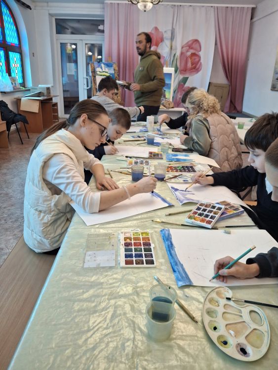 Педагог начал встречу с небольшой беседы: ребята узнали, зачем нужны маяки, почему их свет так важен для моряков и как каждая картина может стать маленьким «маяком» для самого художника. Это помогло детям настроиться на работу и почувствовать эмоциональный смысл будущего рисунка.