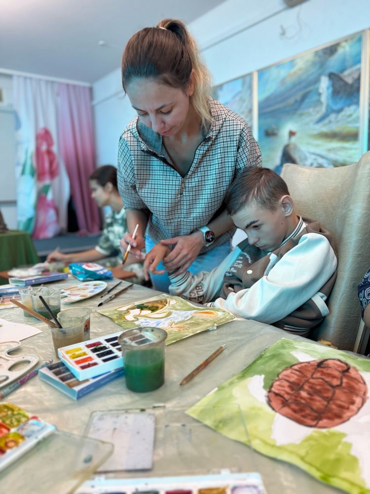 Мастер-класс по изобразительному искусству сегодня прошел в сопровождении преподавателей Центра и волонтеров.