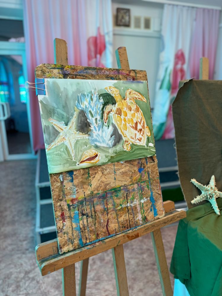 Сегодня под руководством нашего заслуженного педагога Тихона Синицына создали шедевры с использованием натуры морских обитателей.
